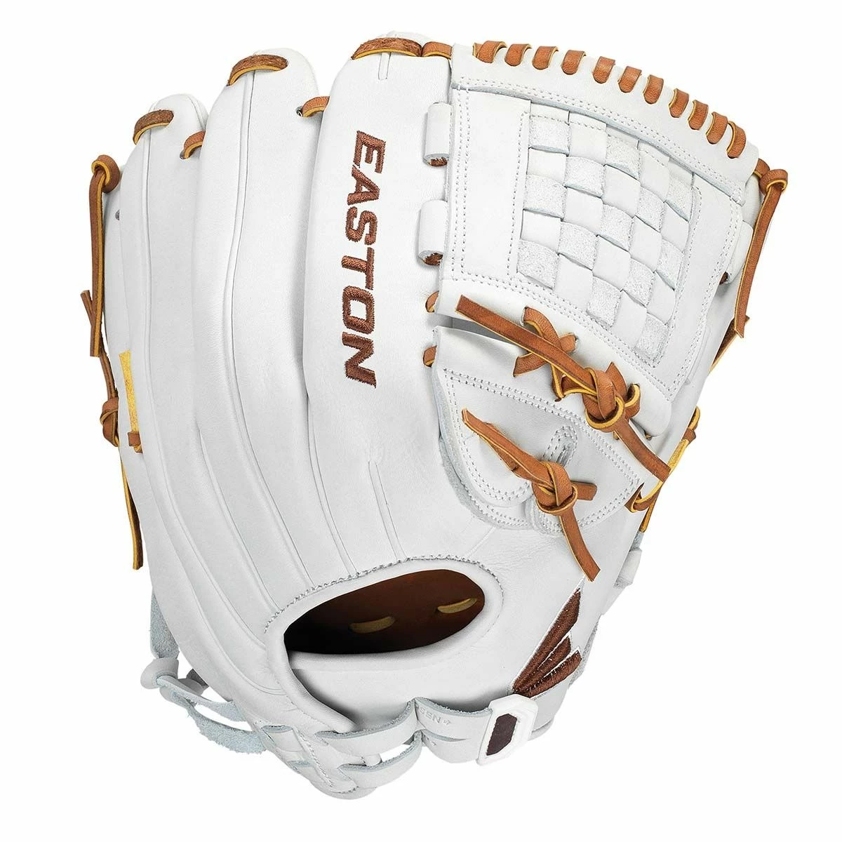 The Easton Professional Collection fastpitch softball glove is specifically designed for smaller hands and fastpitch softball players. This model measures 12″ and is ideal for fastpitch infielders and pitchers. This glove features Premium Reserveβ’ USA steer hide leather with professional grade USA-tanned rawhide lace that is tested to a tensile strength of 100lbs. The glove’s open back is equipped with Easton’s Quantum Closure Systemβ’ that is fully adjustable for a tighter, more secure fit and optimal control. A moisture-wicking wrist lining pad keeps players cool and dry. A full leather lining maximizes comfort, while the steer hide binding and welting enhance shape retention and glove longevity.