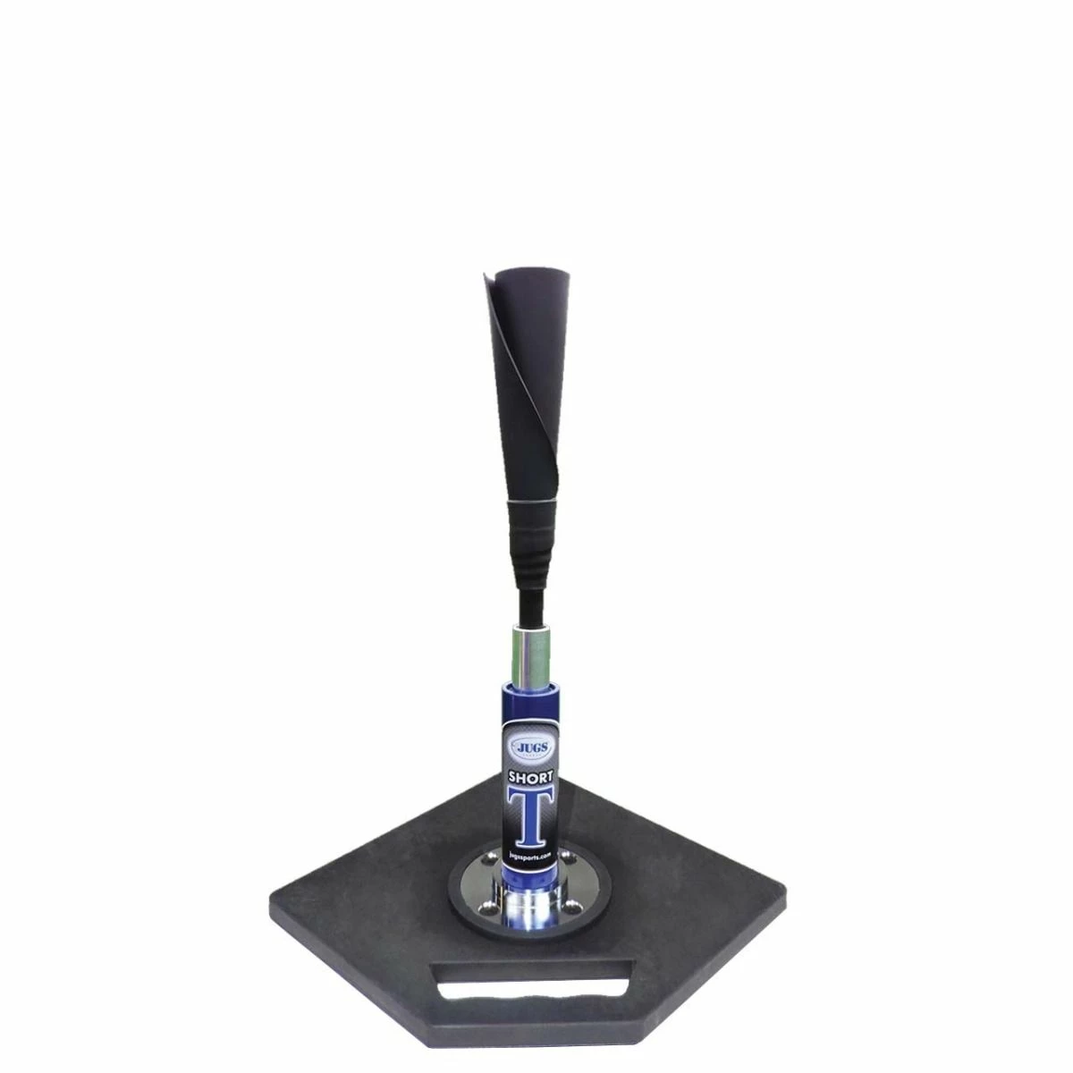 The Jugs combo T batting tee package features 2 interchangeable batting tee stems and 1 base that lets players work at every level of the strike zone. The short tee stem is adjustable from 16β to 23β and the larger tee stem is adjustable from 24β to 46β.Β The steel base is covered in round rubber edges that wonβt scratch or scuff your gym floor and features a grip-n-go handle for easy transport. The always-feel-the-ball flexible top on both stems allow hitters to feel the ball on contact rather than the tee. The patented internal interlocking bolt design prevents slippage of the upper tee stem making the Jugs combo T a high-quality solution for hitting drills at any skill level.