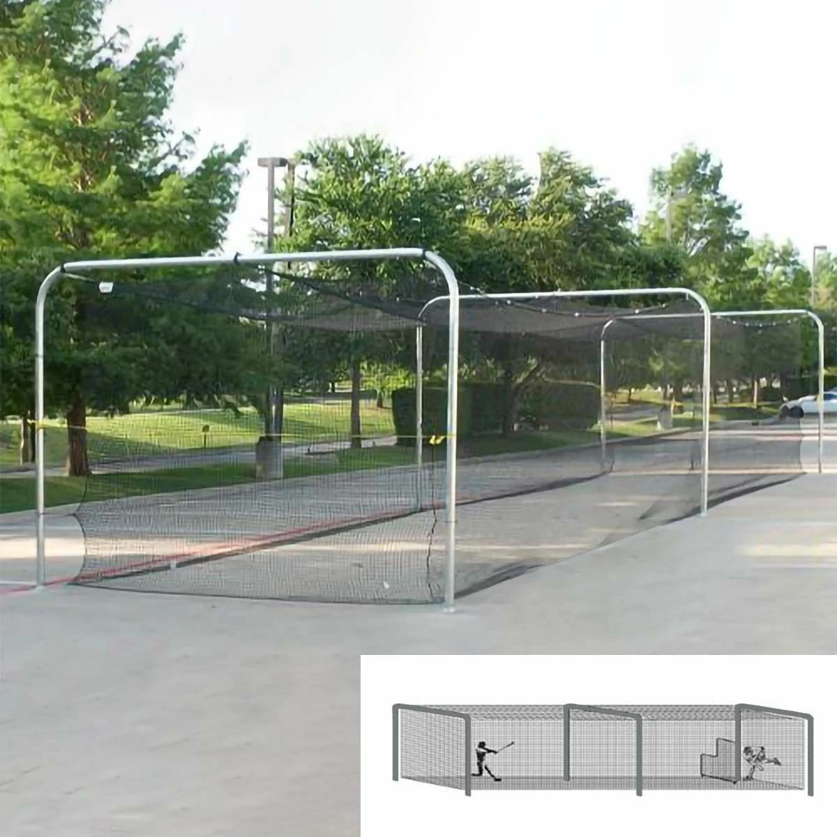 The 3-section pro tunnel frame from Athletic Connection is designed for permanent installation with surface mount or in-ground options, or semi-permanent installation with optional ground sleeves (sold separately). This batting cage frame is designed for use with Athletic Connection’s 70’L x 12’W or 70’L x 14’W Pro Series and Collegiate Series nets (sold separately below). The frame is constructed of 3.5″ OD 13-gauge galvanized steel pipe with each section measuring 16’W x 11.5’H. This package includes upright poles, crossbars, steel cable, clamp, turn buckles & quick links and is backed by a 5 year manufacturer’s warranty. Create your very own batting practice facility with the pro tunnel frame.