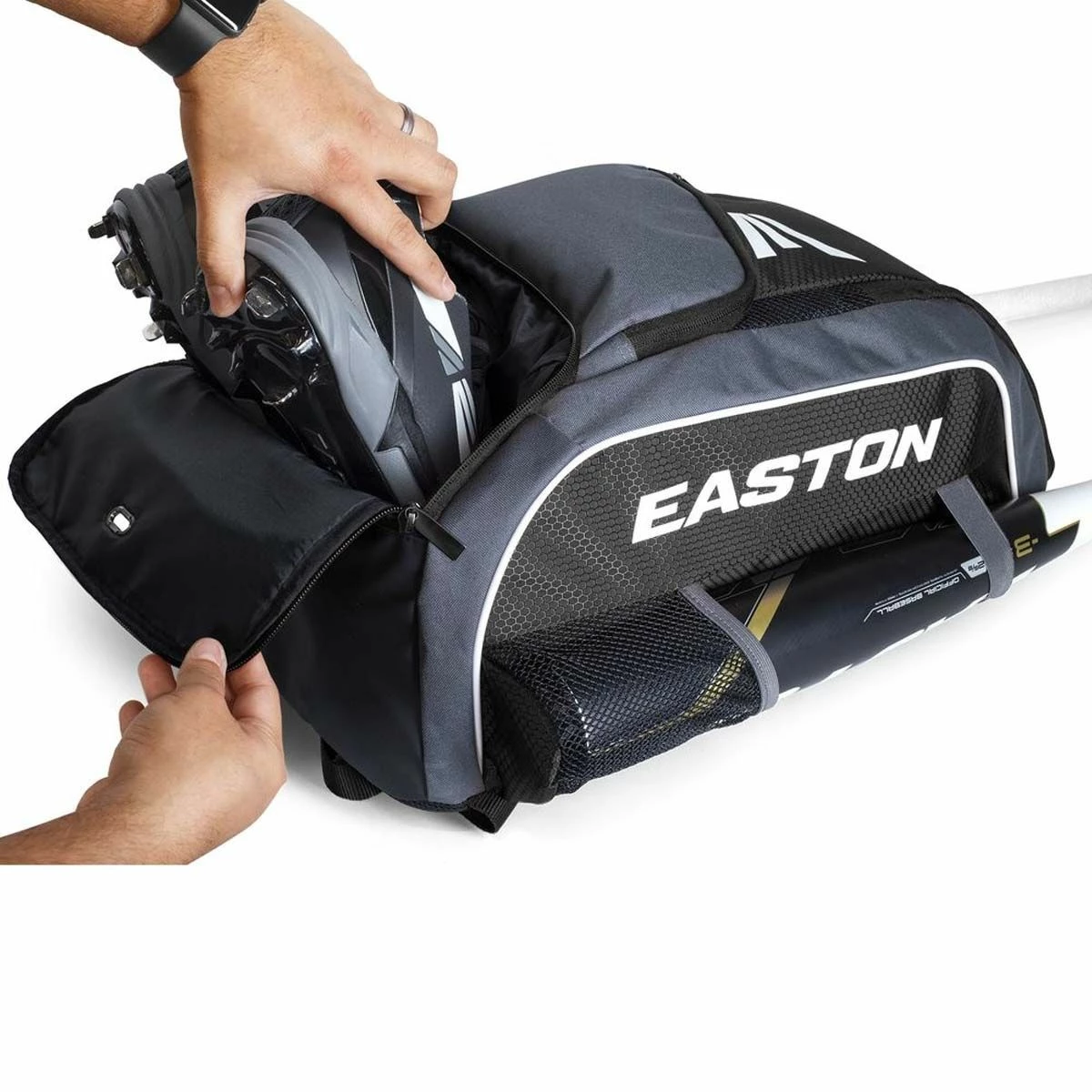 Be ready for the diamond with the Easton Game Ready backpack. Measuring 20″H x 12.5″W x 8.5″D, the Game Ready features a vented main compartment, a separate vented shoe compartment and 2 side mesh pockets to hold bats and/or water bottles. The front pocket keeps personal items easily accessible and the padded back and should straps keep players comfortable on game day.
