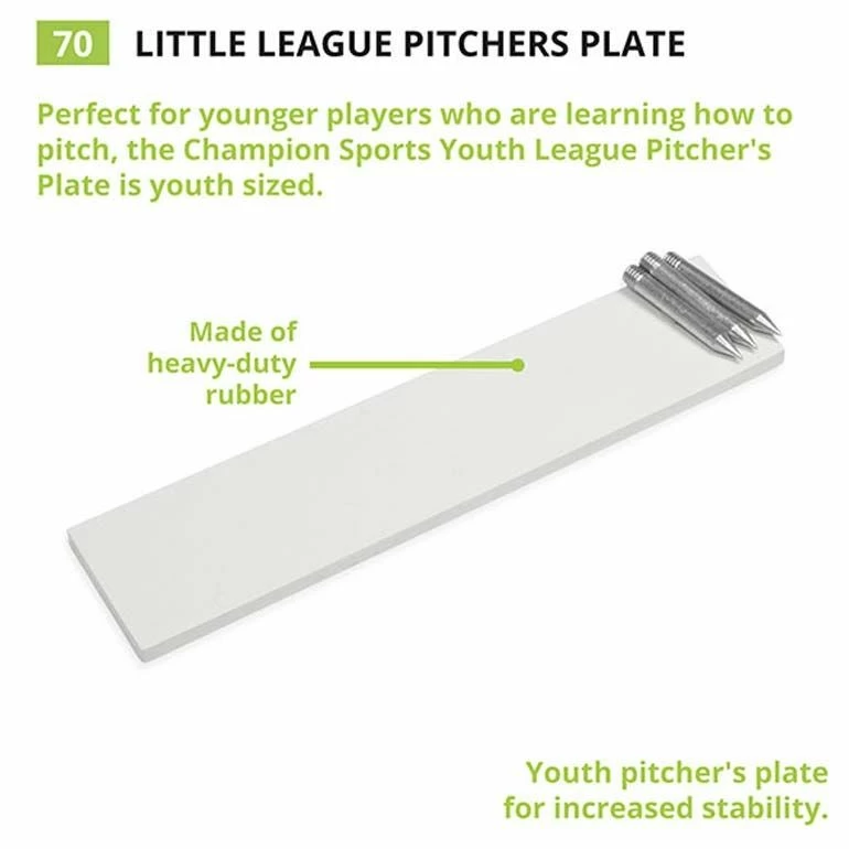 This official youth league pitcher’s plate is an economical solution for your ball field. Β Three metal spikes are included to hold it down securely and the rubber can easily be removed or replaced.