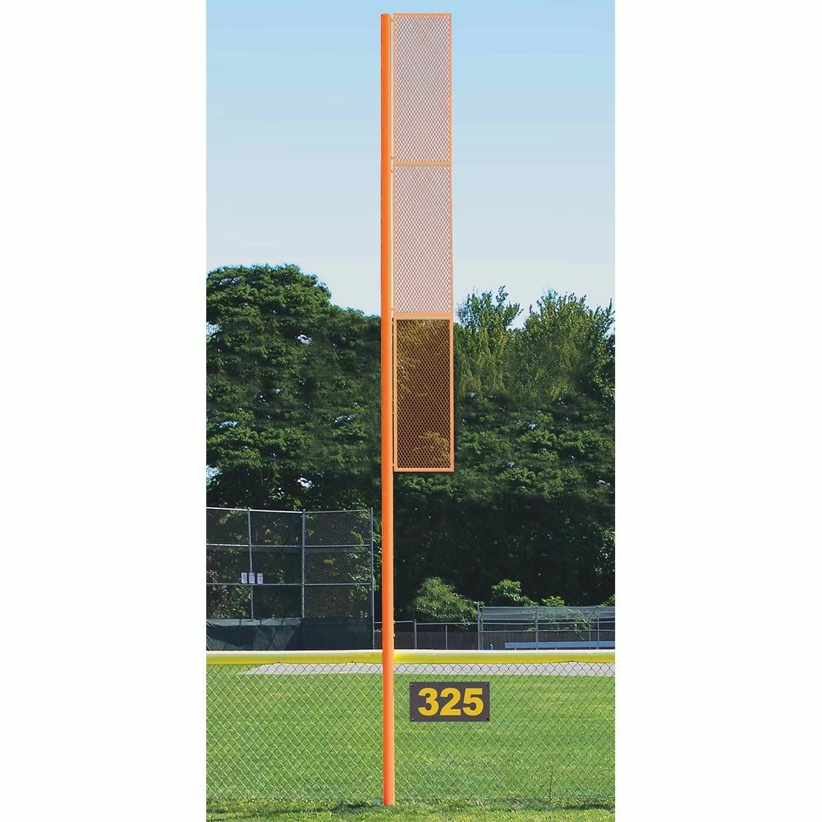 The SBCFP-200 softball foul poles in both white and orange from Jaypro meets current NCAA specifications. Each pro-style foul pole features 3ยฝโ heavy-duty steel tubing with 18″ wide x 6′ high bolt-on steel wing panels. These poles are created with a zinc undercoating and powder coat finish for clear visibility.
