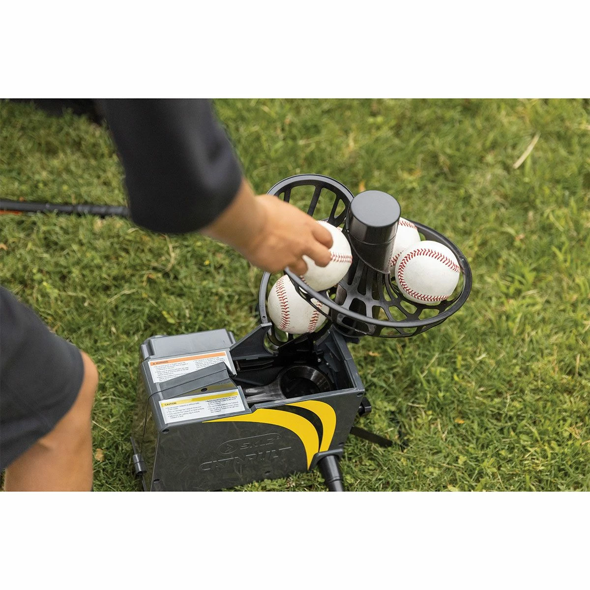 The SKLZ Catapult soft toss machine improves every aspect of your baseball game, allowing you to work on both offense and defense drills. This machine is a great hand-eye coordination training tool as well as a tool to increase hitting accuracy and visual acuity. Use regulation baseballs for soft toss or to practice footwork and glove-hand ball transfer, or use 9″ plastic balls for pop fly practice. The unit adjusts for ball flight angle and throwing distance and serves balls every 8 seconds. See “Additional Info” tab for installation instructions.