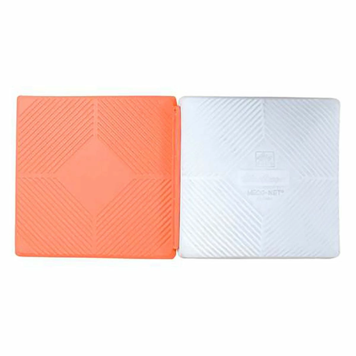 The magnetic baseball/softball double first base features a break-free safety design that disengages from its anchor when hit with enough force from a slide. The white/orange base design prevents players from colliding. The white half of the base lays in fair territory for use by the first baseman. The orange half of the base lays in foul territory to provide a safe path for the baserunner. The white base is equipped with a steel stanchion pan underneath that attaches to the included magnetic anchor fixture. The double first base breaks free from the magnetic anchor upon heavy impact. The double first base cover has a ribbed surface that keeps cleats from slipping on the bag, letting players round the base with confidence. The double first base design also makes it easier for umpires and coaches to identify when players make it safely to first base.