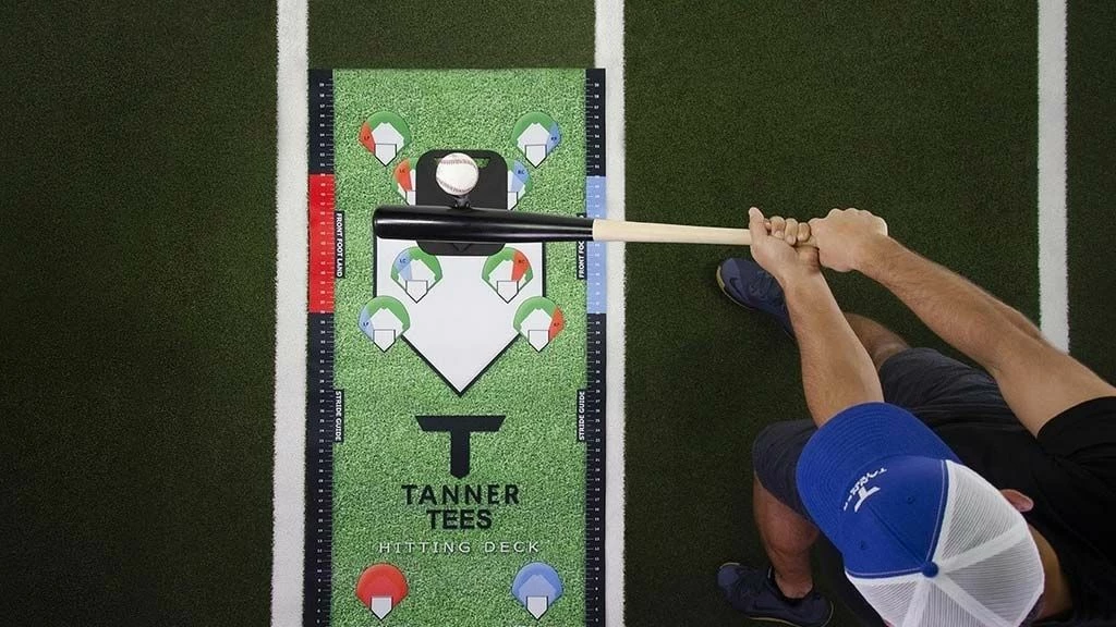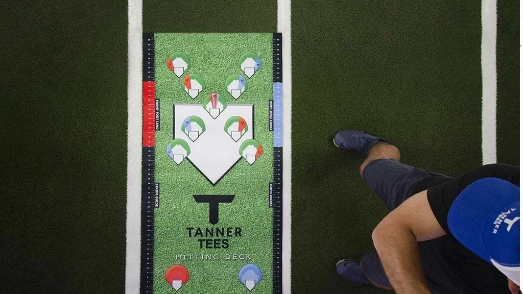 The Tanner Hitting Deck serves as a visual aid to teach staple hitting concepts to amateur players. The colorful visual system is a great guide for young hitters to make contact with the ball and be able to have control of where they drive the ball. This durable neoprene mat fits perfectly between the batters boxes.