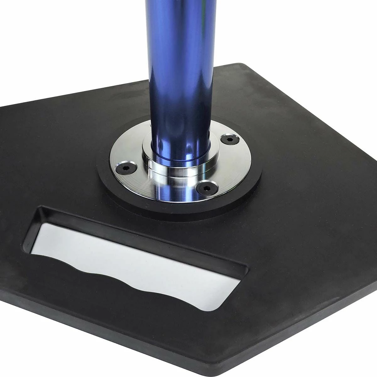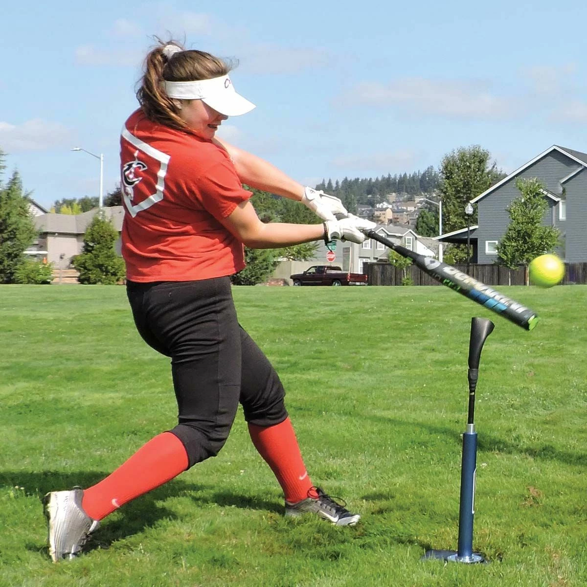 Practice hitting at multiple pitch heights with the Jugs T batting tee. The Jugs T features a telescoping design with a quick adjustment range of 24β to 45β for practicing throughout the strike zone. The telescoping stem unscrews from the base allowing both to fit in just about any travel bag for easy transport. The 14β x 11β, 1/4″-thick steel base doesnβt require outside weight and wonβt tip over. The base is covered in round rubber edges that wonβt scratch or scuff your gym floor and features a grip-n-go handle for easy transport. The Jugs T is great for both high and low tee drills due to its always-feel-the-ball flexible top, allowing hitters to feel the ball on contact rather than the tee. The patented internal interlocking bolt design prevents slippage of the upper tee stem making the Jugs T a high-quality solution for hitting drills at any skill level.