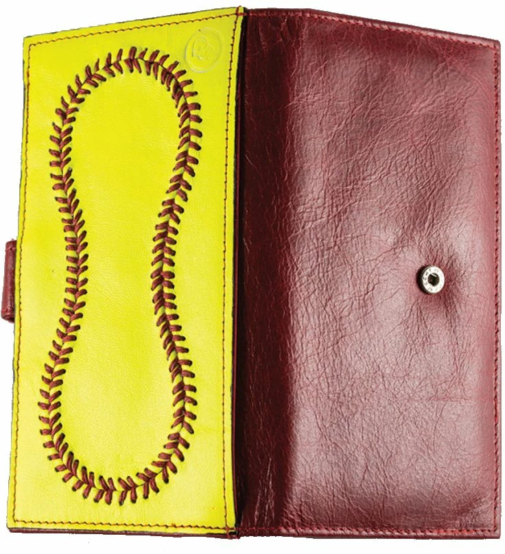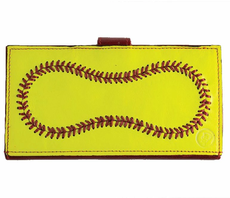 This checkbook is made from neon yellow softball leather and like a real softball, will break in over time. There are 88 waxed red stitches which is the same number as the NCAA and Olympic softballs. Any softball player, fan, or coach will appreciate this authentic sports-themed accessory.