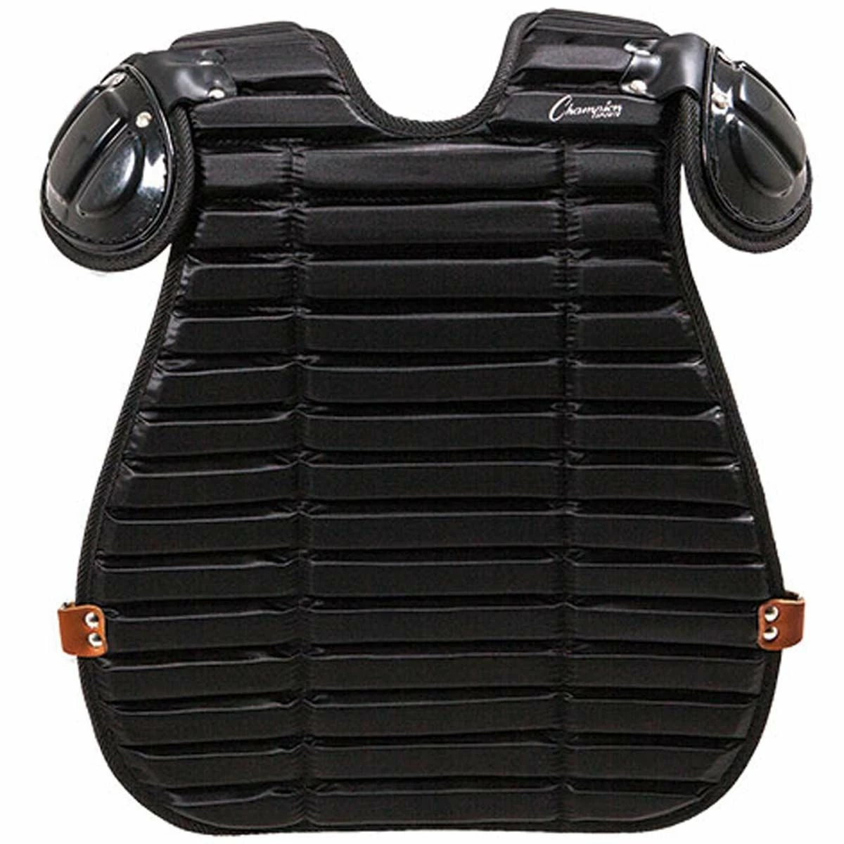 Champion’s inside umpire chest protector is designed for extra protection without sacrificing comfort. This lightweight chest protector features padded Armorliteยฎ shoulder pads to protect umpires from wild pitches and foul balls. Separate arm pads and ribbed foam padding offer added protection while also providing a full range of motion. An adjustable back harness tailors to any size for a perfect fit. This chest protector is designed to wear under the umpire’s shirt.
